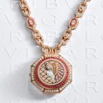 The noble profile of Cleopatra appears as a cameo on the precious pendant of the Cameo Imperiale secret watch necklace. Arose gold chain is matched with a pendant concealing a watch, all featuring diamonds and brilliant-cut rubies. The watch case is also decorated with sapphires, while diamonds are snow-set around the sophisticated Tourbillon Lumière manual-winding mechanical movement, BVL 208 in gold with a power reserve of 64 hours. This openwork mechanism represents a true work of watchmaking art, with all components decorated and finished by hand. Its intricate design allows light to shine through, creating a mesmerizing effect that highlights the intricate details of the watch’s inner workings.