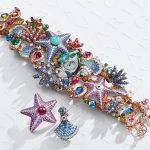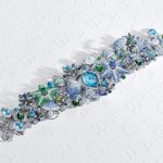 The design studio, along with the brand’s skilled artisans and color gemstones experts, gave life to two underwater gardens where the flexible structure, along with a variety of hidden treasures and living reef convey a sense of vibrancy and joy. All the elements – fixed, moving or set on tremblers, – are assembled on a flexible bracelet made of coral-shaped parts in white gold evoking the movement of sea waves while providing comfort on the wrist. Bulgari was inspired by the Nineties’ Naturalia collection, and in particular, by a heritage shell brooch set with sapphires and a cabochon emerald.