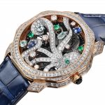 Undisputed creativity and unparalleled craftsmanship brought to life the Octo Roma Mediterranea secret men’s watch, characterized by a precious octopus crafted with diamonds, sapphires, emeralds and Paraiba tourmalines that gives the impression of stepping back, while its tentacles seem emerging from the medallion. Showing a 44 mm rose gold case set with diamonds and a blue alligator strap, the watch reveals an ultra-thin manual movement, BVL 268 SK caliber with flying tourbillon.