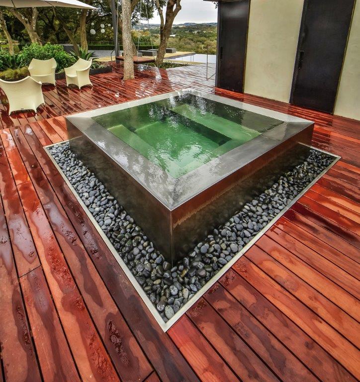 Diamond Spas, Inc. manufacturers stainless steel and copper spas, swimming pools, glass walled pools and spas, swim spas, energy efficient portable spas, cold therapy pools, water features and luxury custom indoor and outdoor bath fixtures built to client specifications at our facility in Colorado. Diamond Spas has one of the best pool and spa engineering teams in the industry. We have the ability to fabricate multiple pool and spa seating arrangements, waterfalls, water features, varied depth seating areas, cool down areas, vanishing edges, acrylic / glass walls and panels, interior stairways, automatic safety covers, LED lighting, and custom equipment packages can all be engineered to accommodate the client’s preferences. Our bath line consists of Japanese baths, soaking baths, whirlpools, shower pans and sinks. Diamond Spas has been catering to upscale residential, commercial, naval, and hospitality markets across the globe since 1996 selling to architects, naval architects, landscape architects, contractors, developers, interior designers and homeowners.  Diamond Spas specializes in roof top pool and spa installations and is the perfect product for super yacht design and construction.  Stainless steel and copper are light weight and extremely durable.