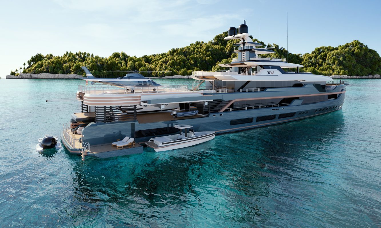 XV67 can carry a full complement of toys which includes 10m tenders, a personal submarine and sailing dinghies. It can be available with or without a helipad, with one of the best Spa and Watersports facilities; as well as a 3-level owner’s suite.