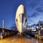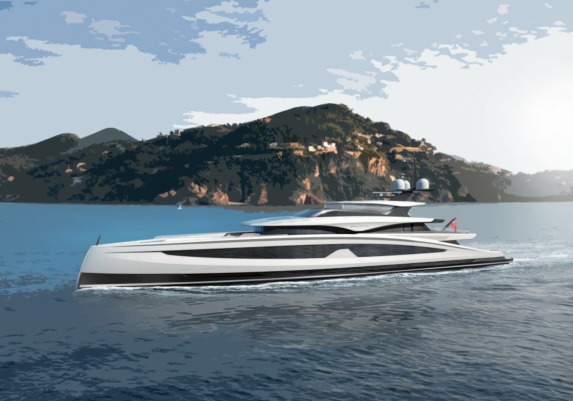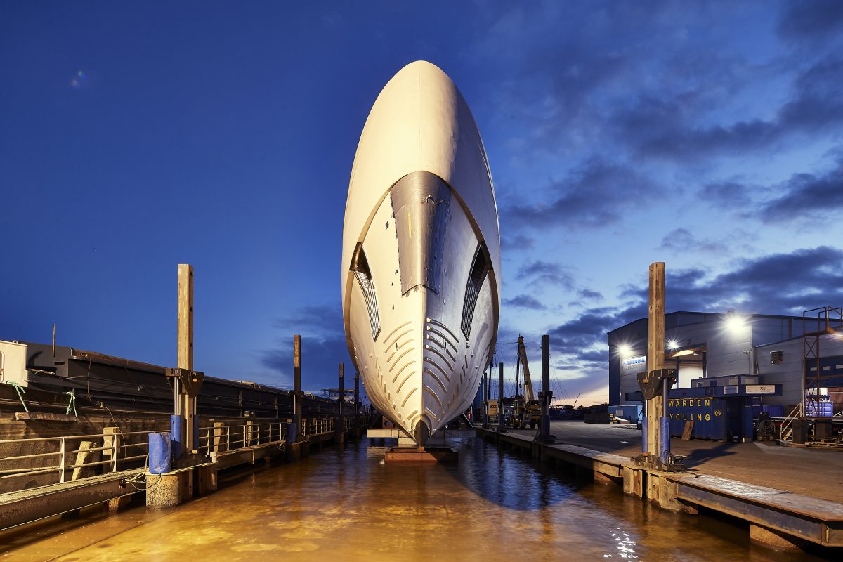 Design: Omega Architects have been appointed to design Project Skyfall. The interior layout is perfectly tailored to suit the Owner’s lifestyle, with the bridge deck aft completely reserved for the Owner’s private use. A generous master stateroom centred around relaxation opens onto a private terrace, equipped with a whirlpool and seating area. Ten guests can be accommodated in four suites on the lower deck. On the main deck forward, the media room features a cinema and a games table for sociable entertainment when at sea. There is also a dedicated area for the owner’s dog.