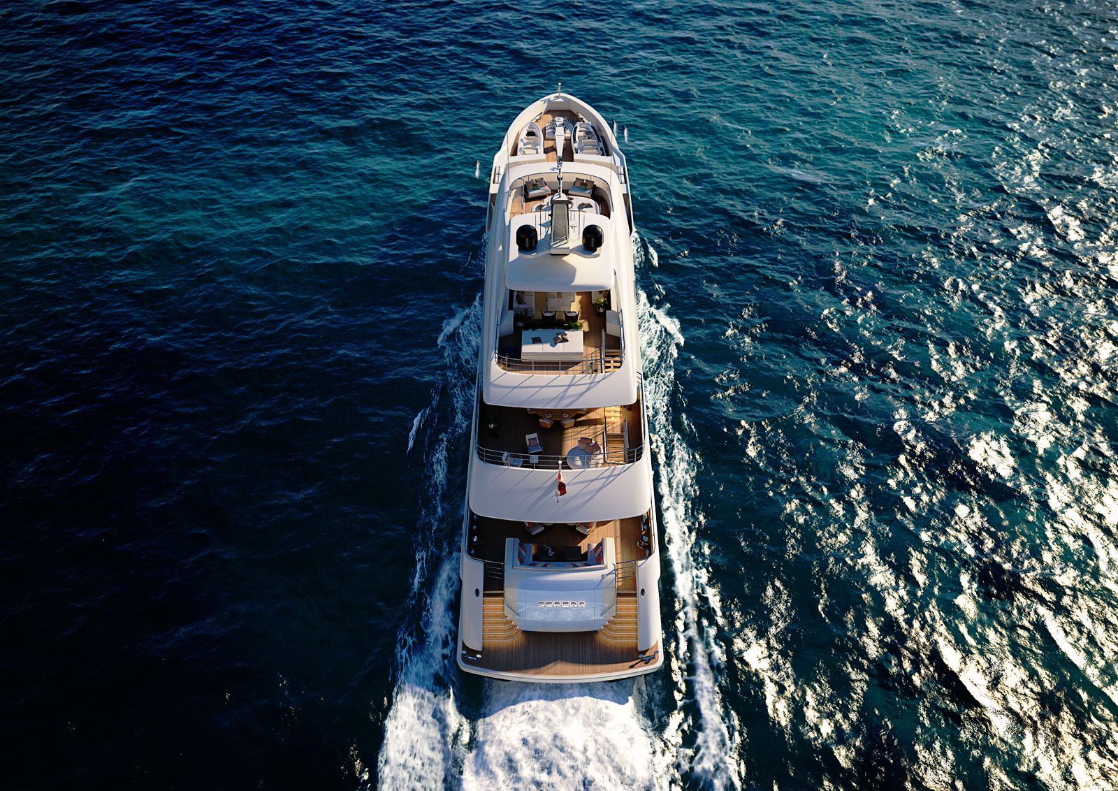 Overview: Sparta stems from Project Avanti a design concept first presented at the Monaco Yacht Show 2018. Project Sparta showcases a dynamic architecture. Indoor and outdoor spaces connect harmoniously and create the perfect haven for family life and relaxation. The layout is characterised by a full beam salon on the main deck and private Owner’s deck as well as one of the largest wellness areas ever seen on a yacht of this size.