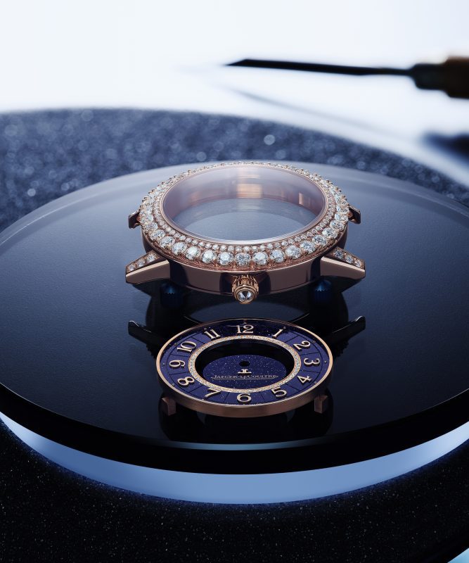 Introduced in 2022, the Rendez–Vous Shooting Star succeeds in the unprecedented feat of capturing a random cosmic phenomenon in a watchmaking complication. Inspired by the rarity and ephemeral beauty of shooting stars, the watchmakers of Jaeger-LeCoultre invented a new mechanism, Calibre 734, that sends a star shooting across the watch dial at random moments, several times each hour. The dial comprises three layers, the first of which conceals the shooting star when it is inactive. Beneath it is a circular disc with a cut-out of the shooting star that streaks across the dial when activated by movements of the wrist. As the star passes, the cut-out reveals a disc of glowing golden metal that accentuates the sense of movement. This beautiful complication lends itself to many different aesthetic interpretations, providing an ideal canvas for the decorative crafts of the Manufacture’s Métiers Rares® atelier.