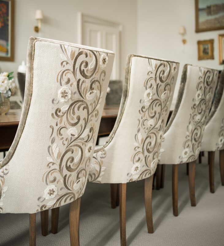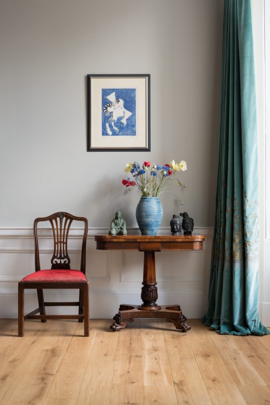 Downstairs, you’ll discover the design studio – a warren of interlinked offices, presentation areas, and creative working space with expansive fabric and wallpaper libraries. Recent projects include full townhouse designs in Edinburgh, a stately home renovation in East Lothian, and a commercial wedding venue and hotel in Northumberland.
