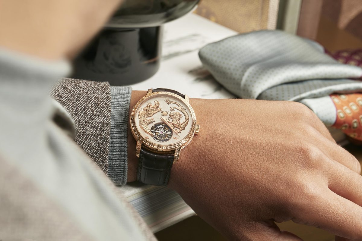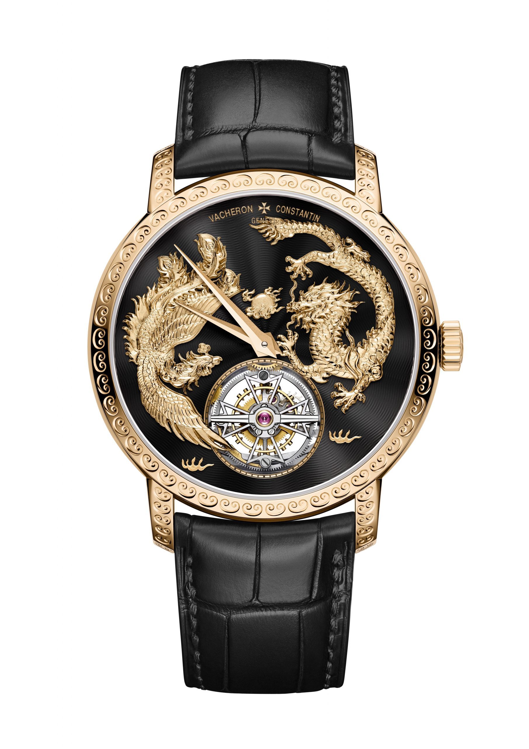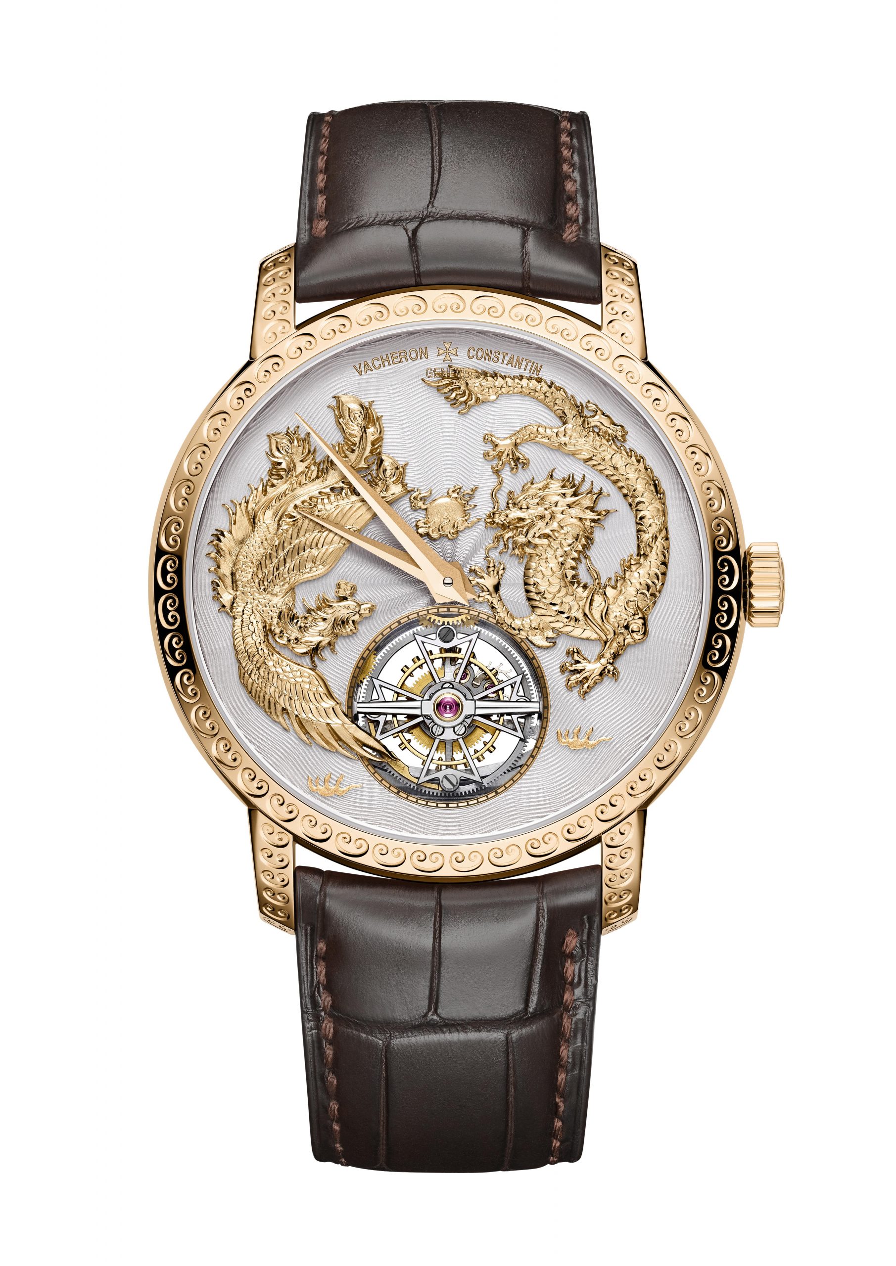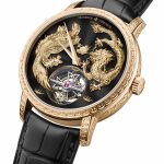 To honour the Chinese legend of the Phoenix and the Dragon, Vacheron Constantin presents three numbered limited-edition Traditionnelle tourbillon watches. The two fabulous animals are depicted in a traditional manner, beautifully choreographed in their dance around the pearl.