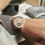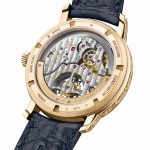 The bar of the tourbillon carriage is entirely hand-bevelled, as are the movement components. The mainplate is circulargrained on the dial side, while the bridges are adorned with Côtes de Genève on the back. Paired with a black, deep blue or brown alligator leather strap, depending on the model, secured a folding clasp and available in a limited boutique edition of 16 timepieces for each dial colour, this watch embodies a perfect symbiosis of artistic crafts and fine watchmaking.