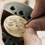 This technique consists of removing material to highlight the contours of the sculpture. After drawing the motifs with a tracing point, the engraver works the decoration with a scorper, like a chasing operation that is ever-more refined as the tool becomes sharper. Volumes take shape, thanks to a delicate alternation of matt and glossy finishes.